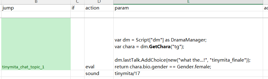 choice | 拡張条件 | 選択行を条件付きで有効化する、例えば choice(if_lv(>=10))。推奨されるのは、choice アクション(invoke* の代わりに)を使用し、param を拡張されたアクションに設定すること | 条件を満たす場合 |